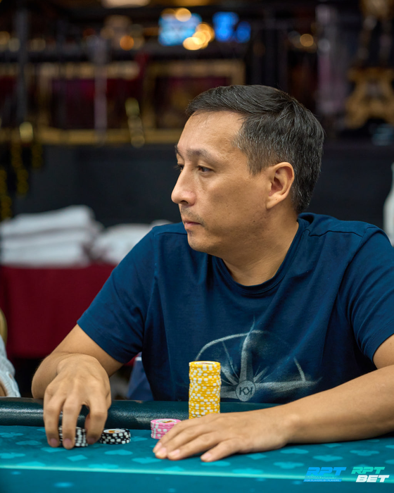 Лимп от Олега Чукина (204К) с кнопки и Рината Атаханова (45К) с малого были отбиты пушем 23,5К от Петра Кыдатова с большого блайнда.