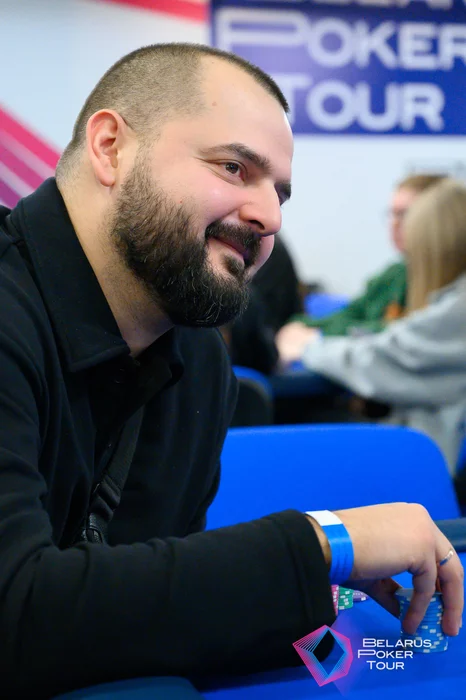 Первым сегодня в кассу отправился Максим Абрамович. Он сыграл 3-бет пуш с малого блайнда в открытие Виталия Лисовского (BU) с , попал в .