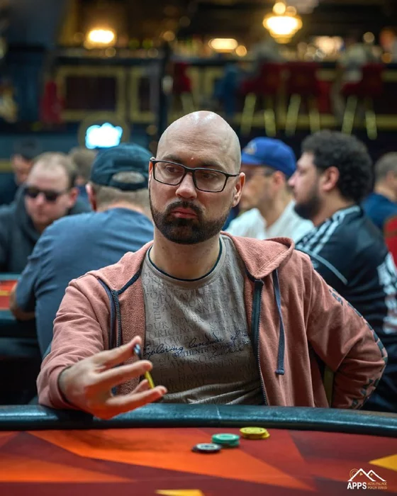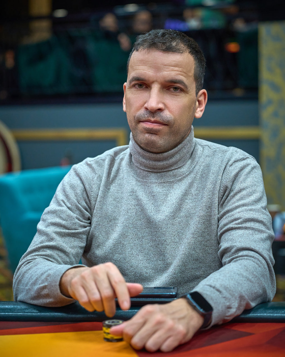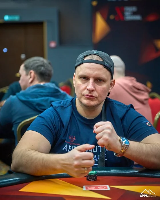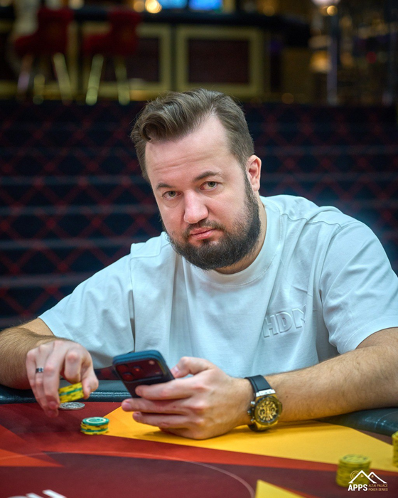 Мин-рейз с утюга от Дениса Столярова (2,4М) заколлировал Алексей Олле (2М) с большого блайнда.