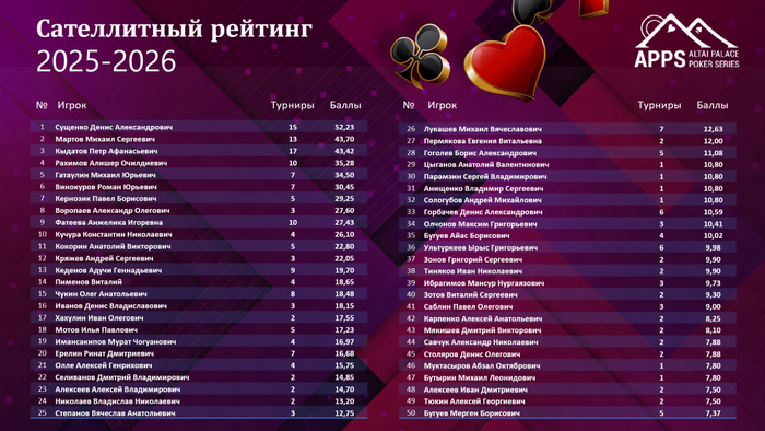 У сателлитчиков лидерство все еще за Денисом Сущенко! И серийный, и годовой рейтинг в его власти.