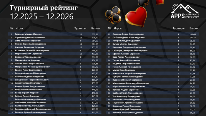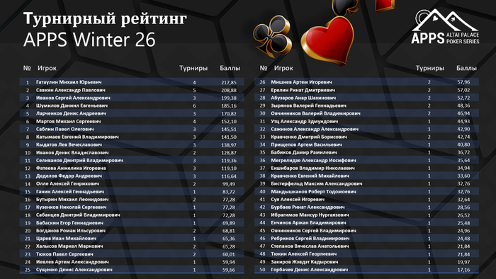В турнирном лидерборде кипят страсти. Только вчера Даниил Шумилов взобрался на первое место в годовом рейтинге, как сегодня там вновь Михаил Гатаулин! Но это не все.