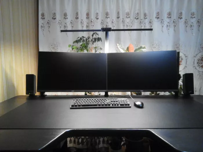 vovadeputat, Обзор на лампу: светодиодная настольная лампа для домашнего офиса, двойная лампа 24 Вт с датчиком освещенности, 5 цветов и 5 режимов яркости, с зажимом для защиты глаз, подходит для, чтения и учебы в студии. Цена около 30$ на озон. Очень удобно и лучше чем с креплениями на мониторы.Не слепит, освещает весь стол 1.8м Х 1м.