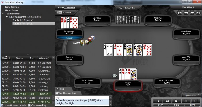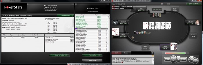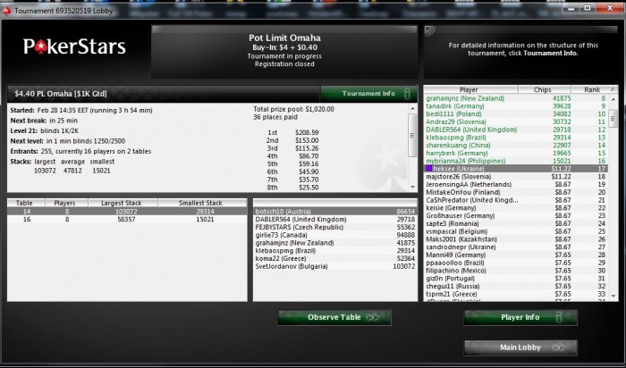 Poker Stars, $1 Buy-in (40/80 blinds) No Limit Hold'em Tournament, 6 Players