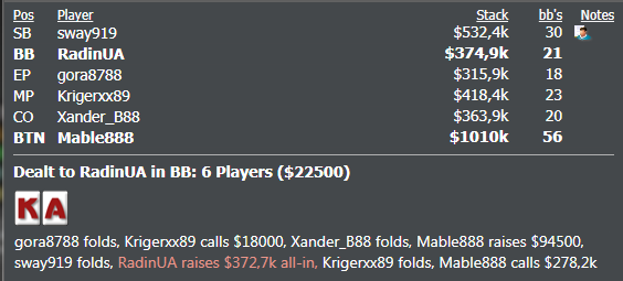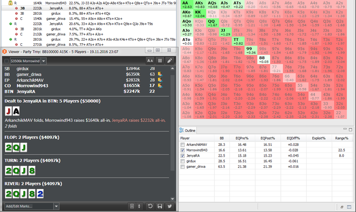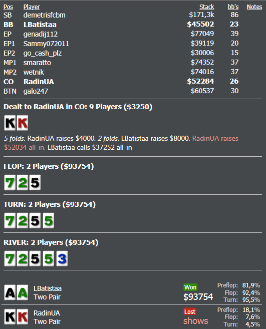 Ну а здесь префлоп мискликнул вколил 9бб ну а там уже подумал по шансам