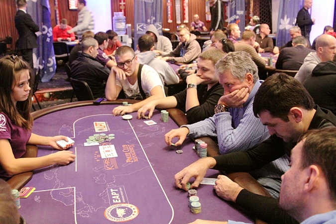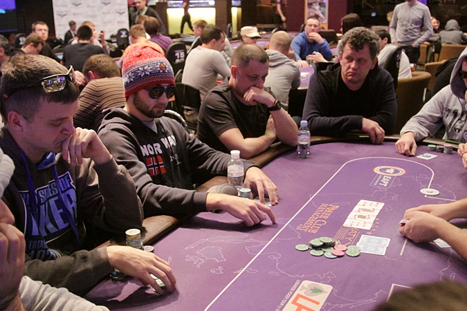 На Крещатике сейчас идет мирная манифестация - выступают ораторы, люди стоят с флагами, желто-синими повязками, слушают - на улице, в общем, все спокойно. Ну, а в клубе "Крещатик" - тем более. Народ постепенно прибывает. Сейчас играется Oracul Poker Club, гоняют кэш... В общем, обычная рутина.