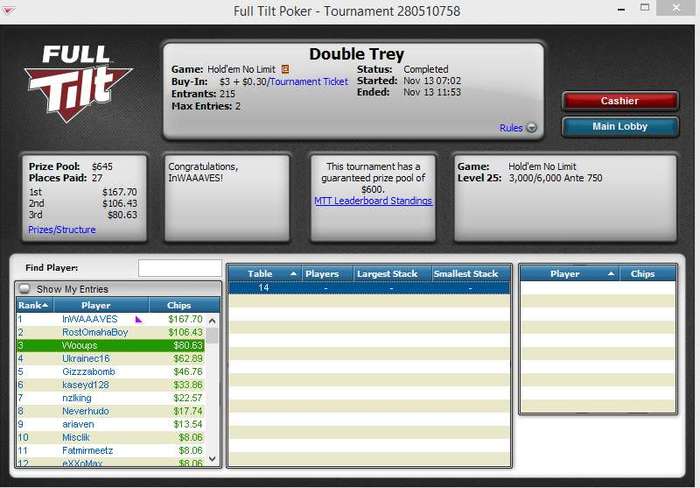 Просто забей. на финалке Топ 2 стек, проиграл короткому. со 2ой парой +ФД против ТП. следом АА<AQ, AJ<69... аут 9ым.. Буду в ребайниках на пс отбиваться...
