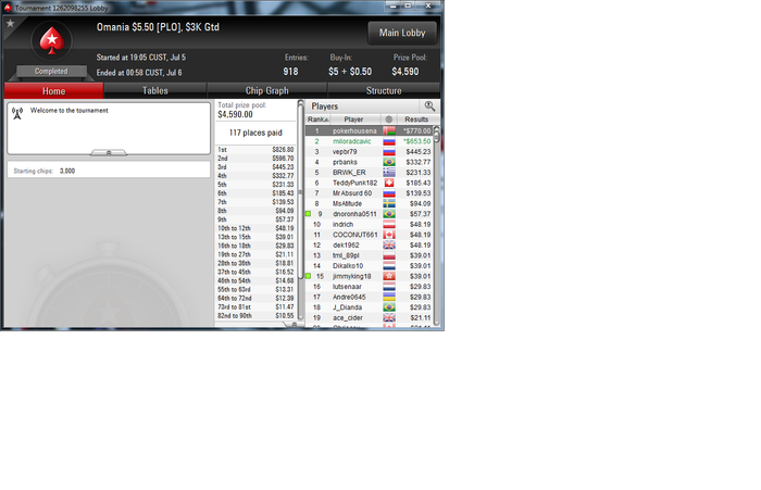 Poker Stars No Limit Hold'em Tournament - t/t Blinds - 7 players -