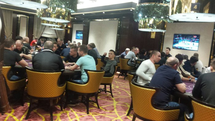 Простоял я в очереди около 1,5 часа. что бы сесть. Сел сначала в 5-5 Омаху; и мы 1 час ждали пока придет Дилер!!! Не понятно, где были все дилеры, но начальное ожидание было только потому, что просто не было дилеров, ВТФ Просидев час в ожидание дилера, освободился стол 1-2 НЛ, сел туда. Но и так не было дилера, а позже из него сделали 5-10. Короч спустя 2 часа. удалось начать играть Кеш омаху 1-2, ура.... Вообщем огромный косяк организаторов, позже очереди были. по 60 человек.