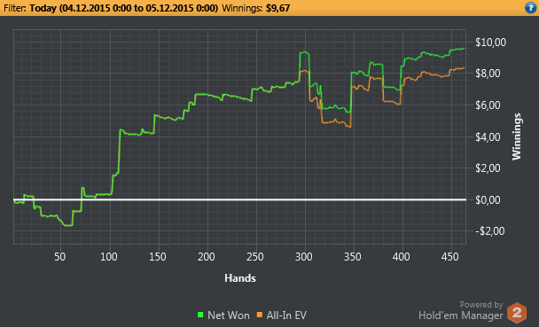 Final Pot: $20.85UTG shows two pair, Kings and Nines