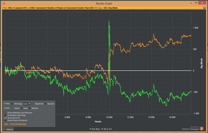 Пробежимся по целям: 1) 750 туров так и не отыграл (не хватило буквально одной сессии); 2) Мультирумить получается (титан уан лав); 3) Сократил % турбин от общего количества - с 43 до 23%; 4) Винрейты EV bb/100: preante 20+/ ante 6+;