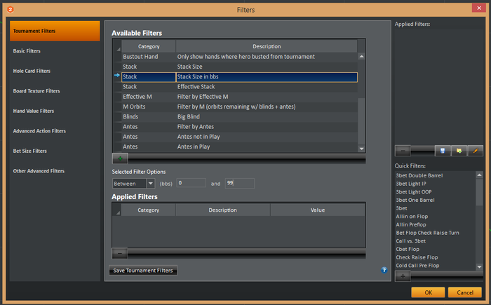 Во вкладке Tournament Ante ставим фильтр как на картинке.