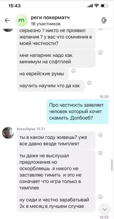 Я лучше честно зарабатывать буду 500 евро, чем как ты пробиваться везде, где есть хоть какая то выгода. Вот переписка твоя же