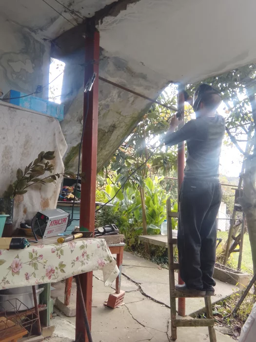 Перекладину себе приварил, подтягиваться. Отрезал кусок трубы. Вроде все обварил вокруг, но внутри было ощущение, что ненадежно это все. Наверное потому что я не сварщик совсем. Пару раз варил что то на работе, сам пробовал учился. И сварочный аппарат купил себе на всякий. В итоге молоток взял, постучал плотно, потом сам подтянулся пять раз своими 90кг , вроде держится. Если отвалится дам знать😊😊😊