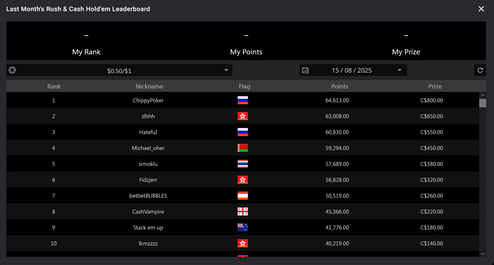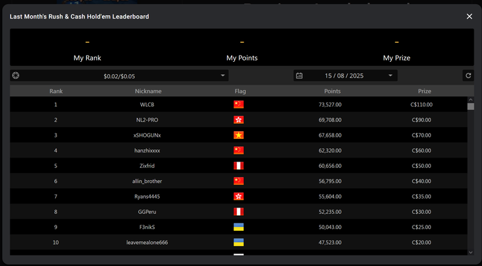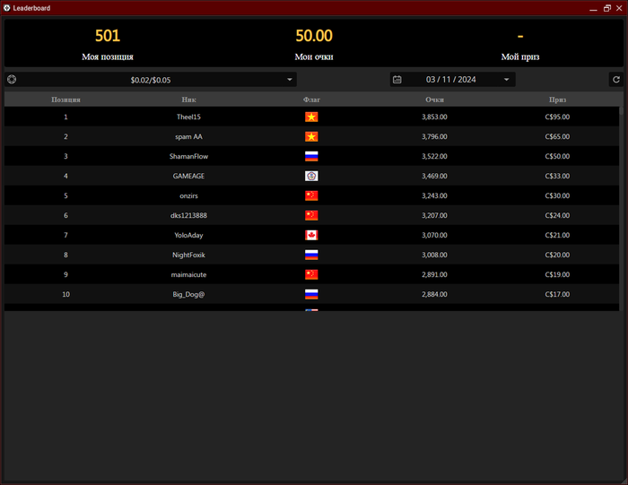Shad2y @ 01.09.25Количество призовых мест не изменилось, они изменили структуру, урезали в топе призы в два раза, при этом подняли минималку, раньше в раше100 минимальный приз был 10 баксов, теперь 30.