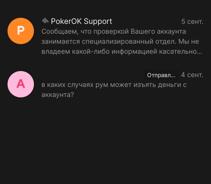 потом они связались с оператором, и написали что мой ник не зареган в ггпокере и типа не могут помочь