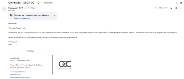 и наконец они зарегали жалобу и получил емейл, что типа получили емейл зарегали , типа жди ответа