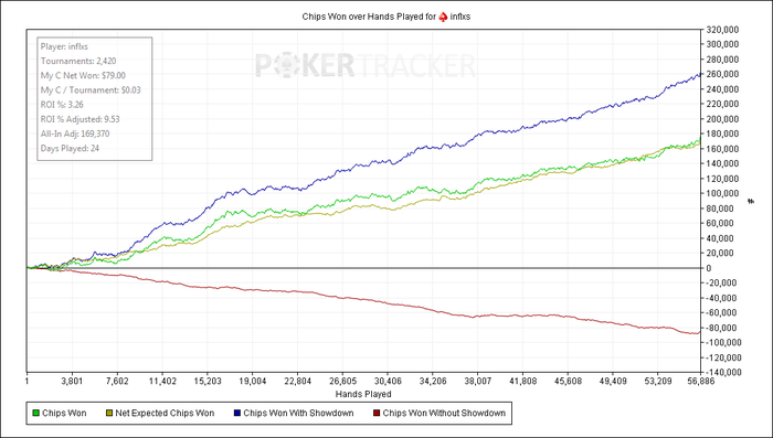 inflxs, Да. Пока ты во флопы попадаеш хорошо. И на шд проблем нет. Говорят это заканчивается рано или поздно. А может и нет. Может и бесконечно можно плюсовать только за счёт синей. Но я всё же считаю что надо ебашить! Давить на оппов, заставлять скидывать , не показывать карты вообще никогда))