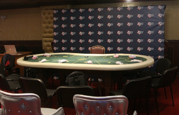 Пришлось повозиться, оборудуя место для игры. Дело в том, что задник за столом №1, который должен был стать финальным, перекрывал камеры, - сели слева ;)