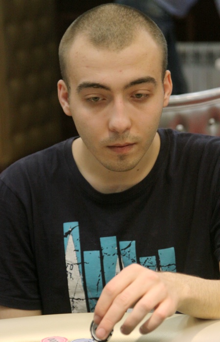 Сергей Кузьминский, проиграв пару крупных раздач, на какое-то время потерял нить. Чем еще объяснить его странный олл-ин с ББ в ответ на рэйз Дюкова с катоффа. Антон уверенно коллировал с , увидел . Но не сумел поглотить стек соперника - дилер выложил общий стрит: !