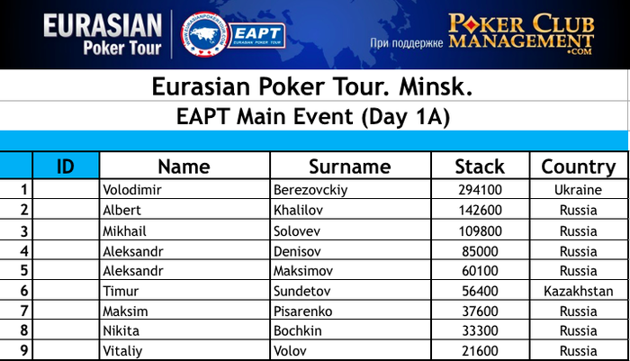 Сателлит к Main Event по $ 100 собрал 45 входов. Четыре финалиста получат путевки в Главный турнир. Игрок, завершивший день на 5-м месте, отправится кутить с 14 миллионами долларов белорусских рублей)