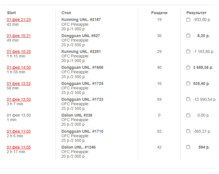 для лентяев, выше на картинке результат: -10646,45 руб для анализа: большая часть минуса сделана на одном столе (за 89 рук), очевидно, тут ПокерДом и Февраль 2к17 г. не причем, это, скорее всего, психологическая составляющая. Простым языком, ТС замазался и пытался отыграться, тем самым закапывал себя все глубже и глубже.