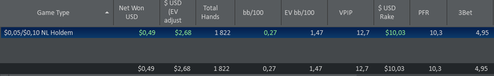 SB: $10.37 - VPIP: 20, PFR: 17, 3B: 8, AF: 2,3, Hands: 3421
