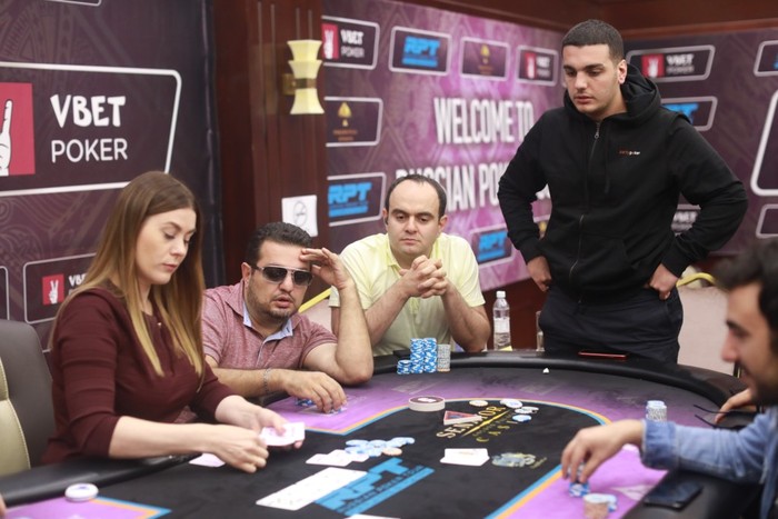 Владимир Сакович ведет ультра-агрессивную игру. В очередной раздаче он открылся рейзом 80,000 с средней позиции, заколировал только Хачик Грикорян на большом блайнде. На флопе Владимир объявил олл-ин, ставя своего оппонента в очень сложное положение, но тот все же нашел в себе силы сделать кол с .более чем на пол миллиона фишек, остававшихся у него за спиной. Владимир оказался далеко позади со своими Терн ривер
