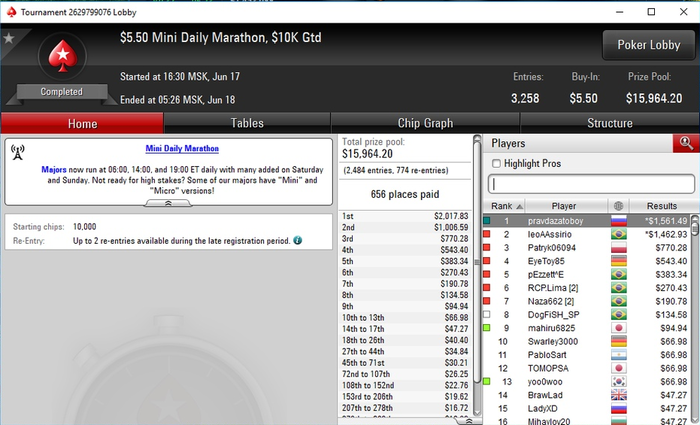 1. Делюсь радостью самого крупного заноса (надеюсь пока) в моей непродолжительной покерной карьере.