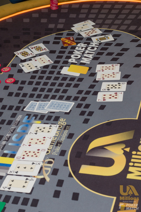 А в топ-4 у нас, кстати, развернулась настоящая битва городов! Рома представляет Харьков и играет на родном стадионе, Александр Чистяков приехал из Запорожья, Максим прибыл на серию PokerMatch UA Millions Stadium из Сум, а Александр Садовый проделал долгий путь из Жешува.