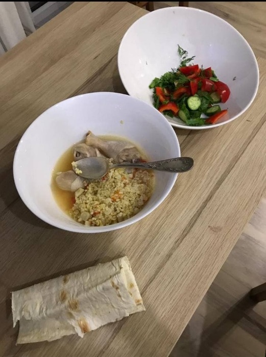 Одним из главных открытий для меня стало то, что вареная курица это вкусно)) Ну то есть я всегда думал, что вареная курица это какая-то шляпа) А на деле это теперь мое любимое блюдо. Я варю курицу с разными гарнирами (макароны, булгур, бурый рис), а в бульон добавляю помидорку, чеснок ну и Лаврентия Палыча) Получается примерно вот так: вкусно и полезно!