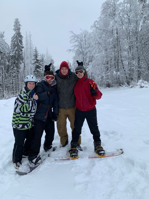 алталаElementary, но спустя несколько дней я стал говорить довольно неплохо, на уровне среднего интермидиата с большим количеством грамматических ошибок, но все свои мысли мог высказать на изи. Ездили кататься на Захар-Беркут, очень холодно, открытый подъемник, снегопад, -10, замерзли нереально, и кататься по такой погоде очень сложно. Первый раз стал на сноуборд, попробовал пару раз, я как крейзи быстро начинаю гонять не соблюдая никаких правил техники вождения для новичков, и когда понимаю, что разгоняюсь очень сильно, что не могу контролировать движения и скорость падаю на жопу чтобы затормозить)))) Нам нужно было сдавать карточки подъемника до 13-00, если не собираемся на них спускаться, ну решили, что го с горы спустимся на бордах, некоторые уже катались, некоторые профики, ну а я, девушка и еще пару ребят вообще зеленые, на бордах по 1 разу стояли. Ну это лучший опыт, таким образом удалось и спуститься, хоть и с травмой, но выхода не было и научился кое как кататься.И мои любимые