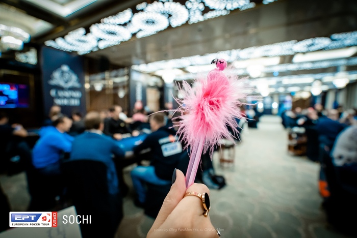 Доброе утро! И по всем приметам, завтрасегодня будет ясно Сегодня мы сыграем 2 оставшихся стартовых дня в Главном Событии, В и С, стартующие в 12 и 18 часов. Уровни, в отличие от вчерашнего захода, будут ограничены 30 минутами, 10 уровней без перерыва на обед. Для тех, кто не наигрался, в 8 вечера стартует однодневный турнир по холдему. №14. 12:00 133000 RUB Флайт В NL Hold'em - EPT Sochi Open Главное Событие - 70,000,000 RUB Гарантия №17. 12:00 14700 RUB Однодневный Main Event Satellite - выиграй место за 100,000 фишек - неограниченные ре-энтри №14. 18:00 133000 RUB Флайт С NL Hold'em - EPT Sochi Open Главное Событие - 70,000,000 RUB Гарантия №18. 20:00 18200 RUB Однодневный NL Hold'em - неограниченные ре-энтри