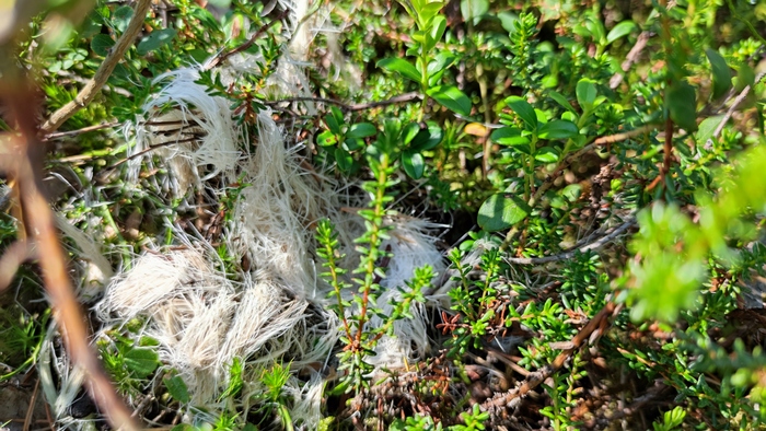 Вышли как-то на материк (в дальней части озера, до ближайшего насленного пункта 100 км - нетронутая природа). Поднялись на пригорок, по дороге Лёлик увидел старые кости. Потом пока спускались - я увидел кучу шерсти (предположительно оленей). А спусть еще минут двадцать проходя через болото я заметил след (похоже так сильно испугался, что забыл сфотать ), который судя по размеру и длине когтей принадлежал небольшому медвежонку, относительно свежий. Дальше разговор: