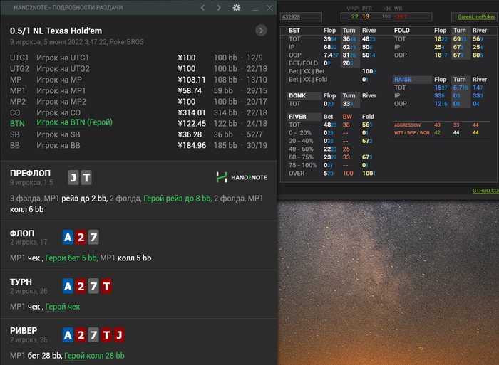 «Приятно, что мне, наконец, сложилось на самом дорогом лимите – PLO4К. Там собирается игра под одного очень большого ВИПА. Впервые удалось прилично перебрать по ЕВ. Но даже с учётом этой сессии у меня все еще недобор», – прокомментировал Юра свой выдающийся результат.