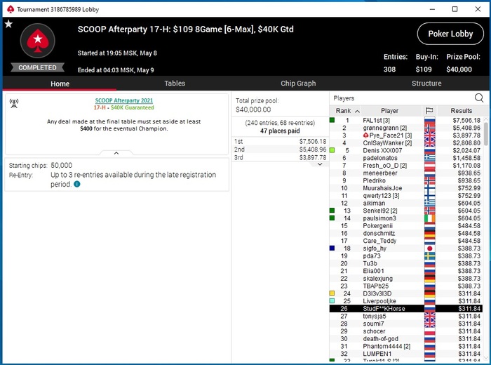 StudF**KHorse (UTG): 185,158 (37 bb)