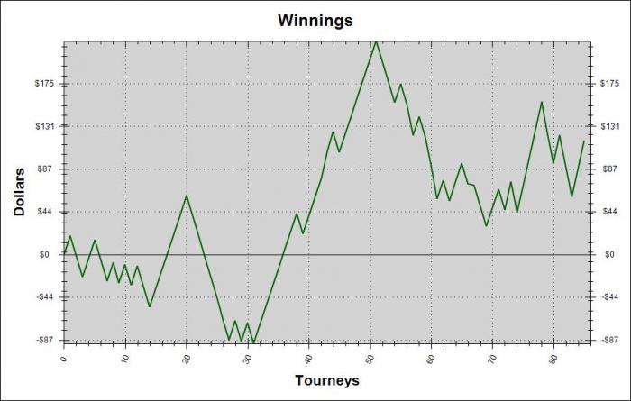 Даже представить сложно - у меня средний РОИ был в этом месяце 12-13%, при том, что был перебор (нормальный, не то что я снизу тащил, просто стабильно выигрывал почти все выставления сверху). А за эти дни РОИ по ЕВ у меня достигал иногда отметки 16%... Действительно круто читал оппонентов, делал классные фолды, отличные блефы и доборы (хотя это не значит, что играл идеально, тупил тоже достаточно). Вобщем, не было бы счастья...