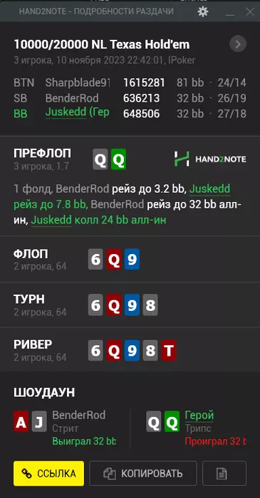 Jusked @ 02.11.23А вот уже потом в чате кто-то предложил рассмотреть идею лимпа с 77 и это просто гигамув какой-то. Все в чате + Никита, согласились что в разы лучшее решение. То есть в данном случае руки, которые мы не хотим играть рейз-пас, легче просто увести в лимп. Даже при лимпе скорее всего сб не будет заходить в банк с чипаком с руками средней силы и чел на баттоне всё равно будет играть 1х1.