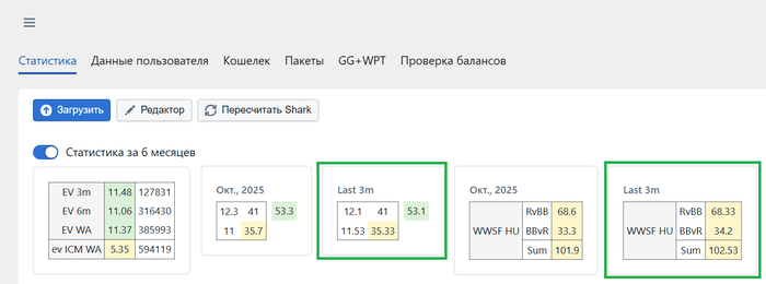 Апгрейднули личный кабинет. В личном кабинете в разделе «Статистика» появились новые блоки: теперь основной квадрат и показатели WWSF в спотах RvBB + BBvR отображаются не только за последний месяц, но и за последние 3 месяца.