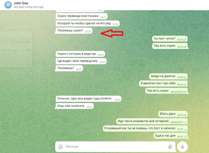 Ты тут не прав немного. Прочитай мой топик. У меня была проблема. Что меня с телефона кидало сразу на 19 страницу. И там был нюанс с телегой. Вот если бы в тот момент я был кинут, кто виноват? Телега указана была в топике, была. Типа нельзя редактировать, ну ок. Когда все вылезло, ничего не помешало отписать модераторам, и они исправили. Что мешало это сделать? Вместо этого я был и уебаном, и сам все замутил, и ещё тут банду ботов привёл. Твои контакты - твоя ответственность. Но это уже минувшее, я смотрю Джонни и без меня с остальными, закопал себя ещё глубже, просто общением. Хотя мог тут даже на первых страницах ответить опять нормально, и мы бы не видели щас арбитраж, и тем более скрытой темы.