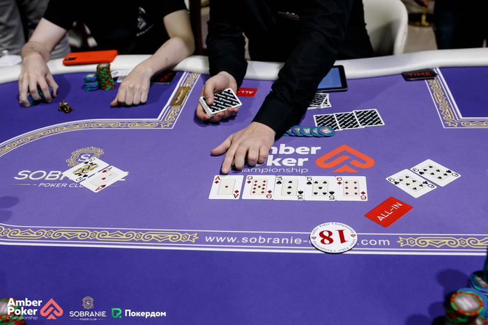 Роман Стойка (UTG) по флопу , сыграл чек-рейз с 7к до 17к. Виталий Евдокимов заколлировал. Терн , прочекали. Ривер , Роман быстрый олл-ин ( у Виталия 70к за спиной), после паузы выбросил. Стойка - 185,000.