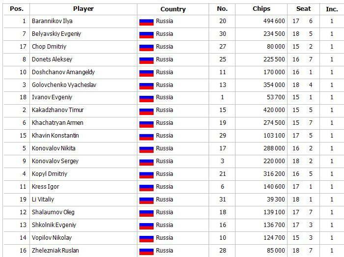 Максим Шестаков в последней раздаче турнира на сегодня удвоился с против Вадима Лукияна. Поехали по 30,800.