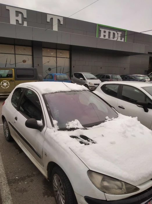 Ночью в горах выпал снег, кто-то приехал оттуда в магазин на машине, покрытой снегом сантиметров в 5 толщиной