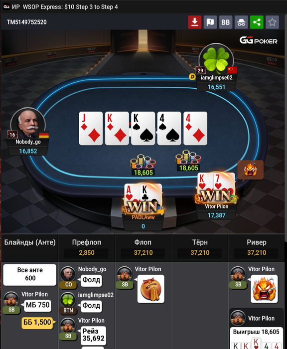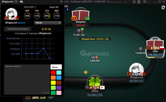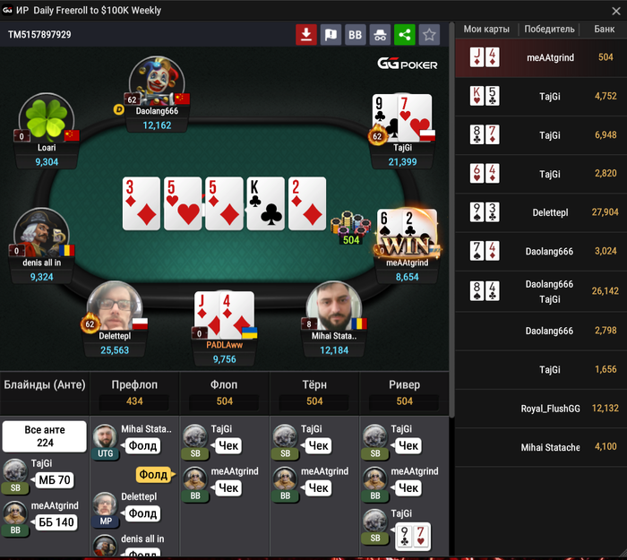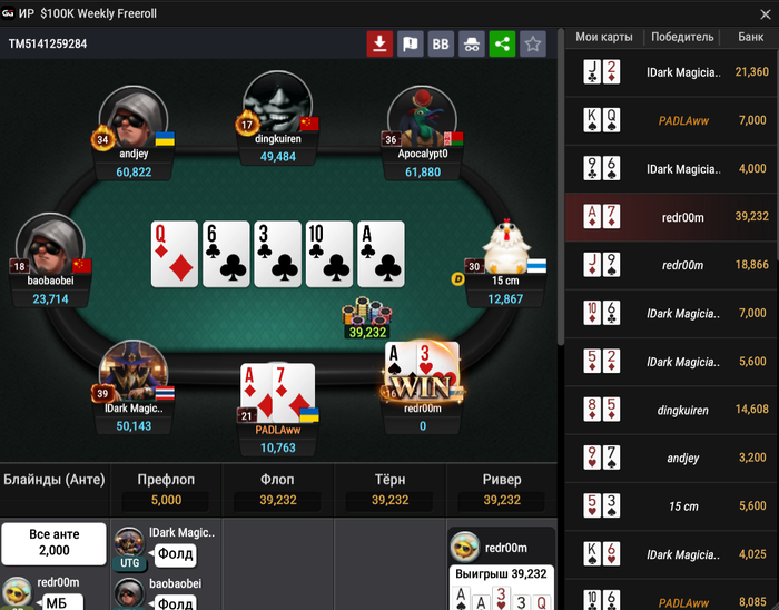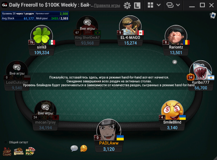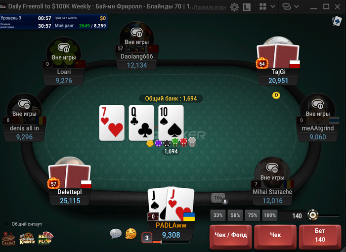 После этой раздачи с JJ, опять же блефами+вэлью набил 30к и по новой: вахуя
