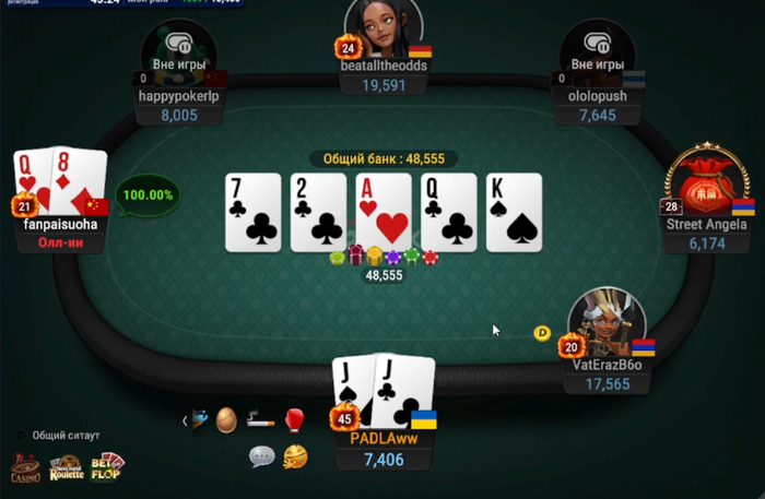 Ну не отвечает, такое тоже бывает. Не в настроении или много столов. Далее раздача(боты тоже лузают, они просто тут чтоб разогнать и потушть "адреналнчик"), я об него удваиваюсь и рейджу чтоб вызвать хоть какую реакцию: