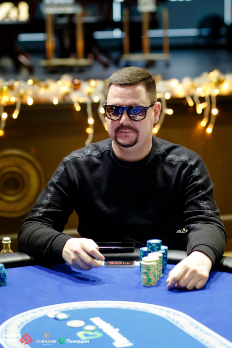 Игорь Кожевников c первой поставил олл-ин 10 ББ на . Руслан Железняк на большом блайнде не смог выбросить карман дам и уравнял на стек 8 ББ.