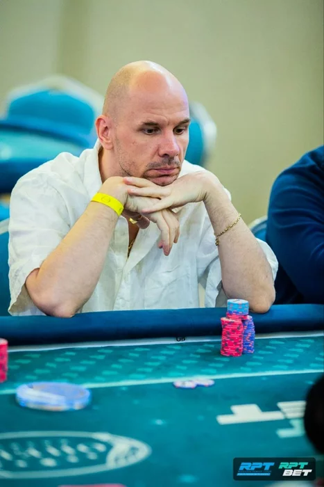 С малого блайнда Петр Руднев (190к) выставился с против Ильи Матуся (120к) с .