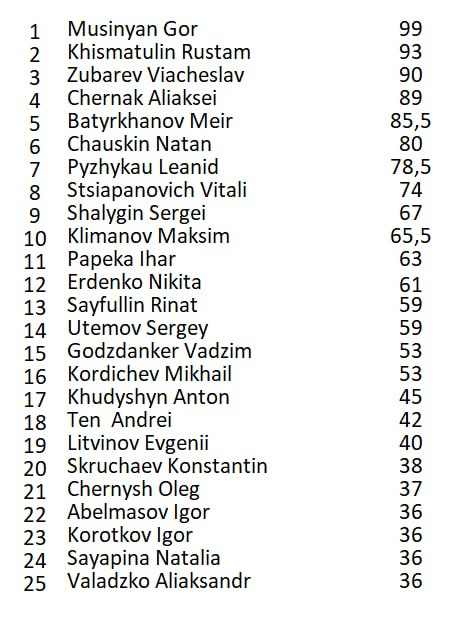 Рейтинг, с учетом всех турниров, кроме ХР Нокаут