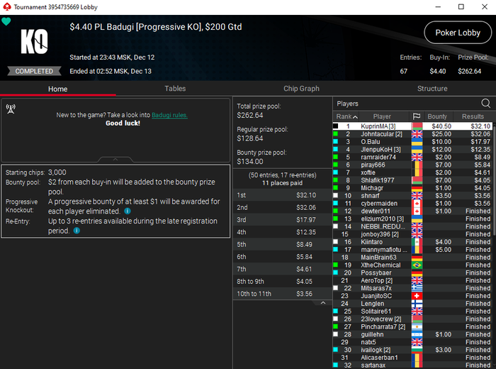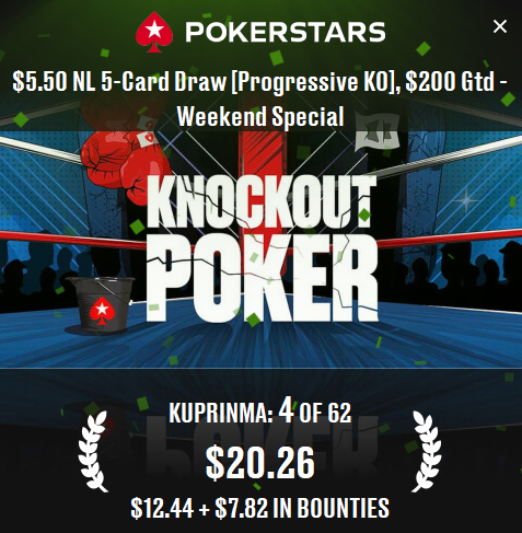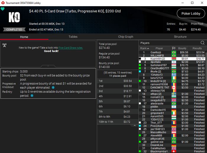Сегодня сыграл лайтовую вечернюю сессию. Выиграл бадуги, а в 5-карт дро сильно не повезло, поэтому только топ-3.