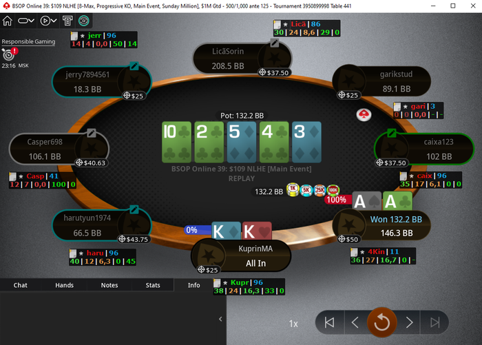 Сегодня впервые за последние 3 года игры на старзах, одновременно играл сразу 9 столов, причём в разные игры. Навыки вроде остались, игрой доволен. Таймбанки правда трачу, но ничего страшного. Сделал ещё одну финалку в дневном бадуги, занял 3 место, а так же выиграл саты на шторм и Main Event BSOP Online за 109$, с отборочном за 5$. Гарантия 1 миллион $!