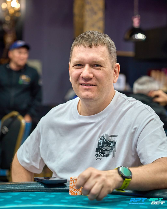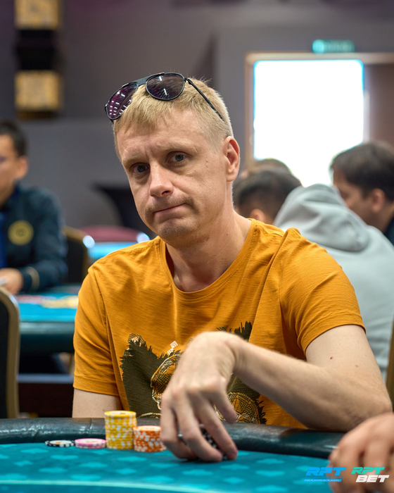 Михаил Дрожжин очень быстро вернул прежнюю позицию, забрав большую часть стека у Инсафа Сабирова, загнав того под авто-оллин в раздаче против Григория Зонова.
